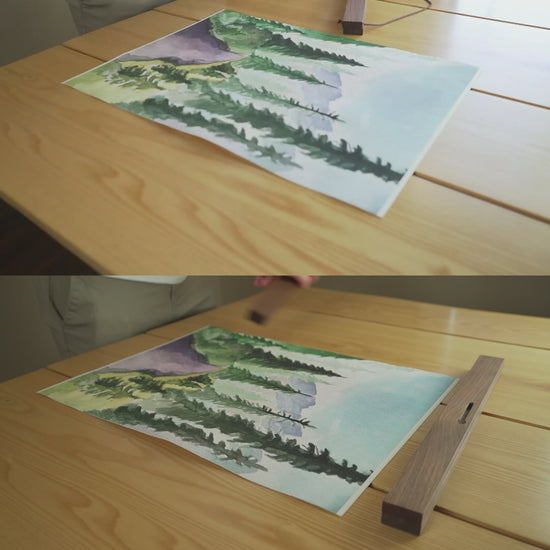 Choose from a range of sizes and styles to find the perfect fit for your artwork. Our hangers are made from premium alder hardwood in our woodshop, ensuring quality and durability. Each set includes four magnetic sticks that can be clamped onto your artwork - two on the top and two on the bottom. You can also customize the look with your choice of six environmentally friendly stain colors.